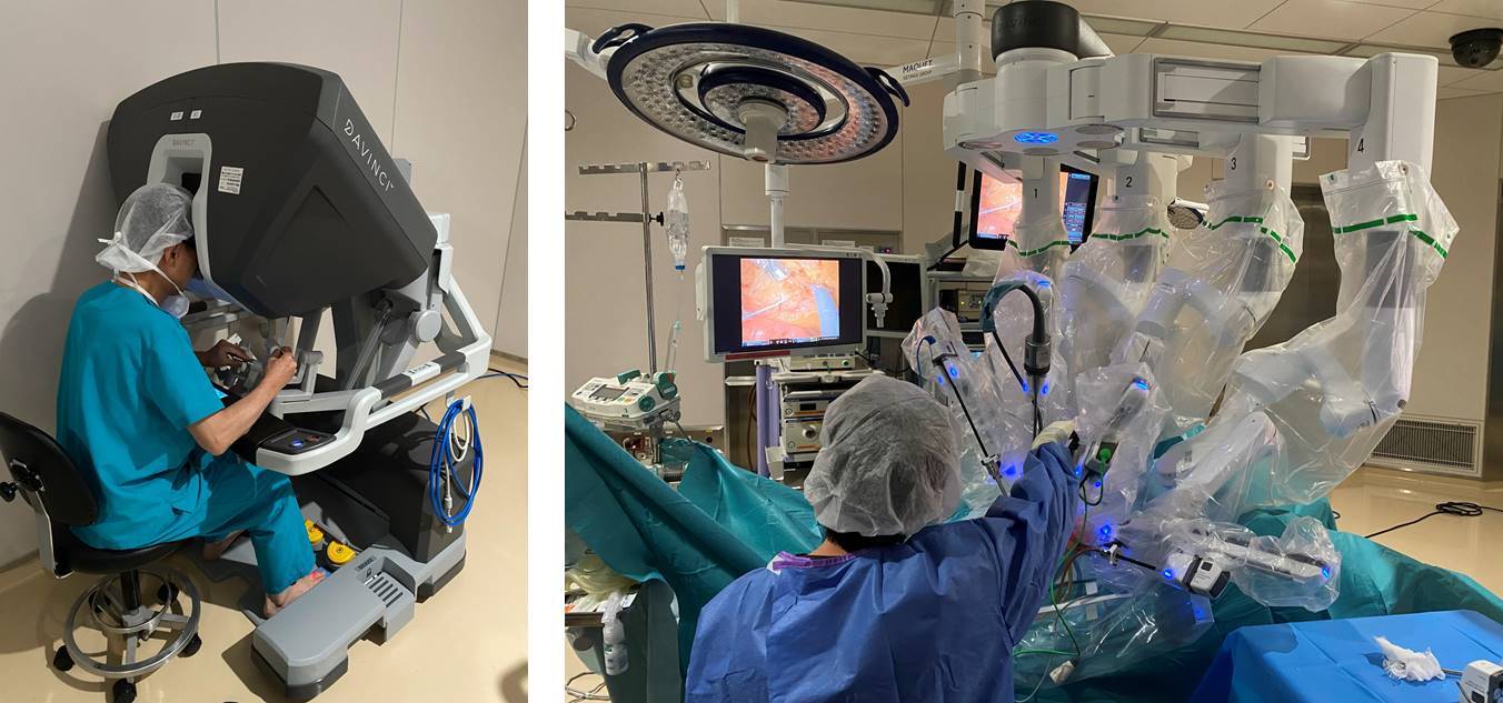 これらの利点から当院では直腸がん、結腸がんの全例をロボット支援手術の対象としております。手術支援ロボットダヴィンチ3台体制(da Vinci Xi2台とda Vinci X1台)で、県内でも結腸・直腸領域で数名しか認定されていない内視鏡外科学会の定めるロボット支援手術のプロクター認定(ロボット支援下内視鏡手術の手術手技において、術者として標準的な技量を取得し、他者によるロボット支援手術を円滑かつ安全に指導できる指導者を認定するもの)を受けた医師2名が在籍し、安全で質の高いロボット支援手術提供しております。