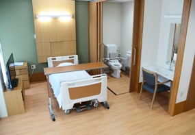 見晴らしの良い広々とした個室で、ゆったりとプライベートな時間を過ごせます。また、各部屋には車いすで利用可能なトイレを設置しており、自力での排泄を支援します。