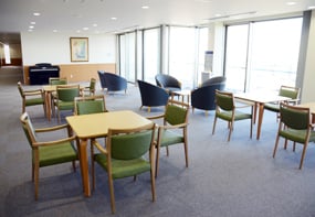 広々とした空間でベッドのまま集えます。絵画・季節の展示をはじめ、季節の行事やティータイムなどを催し、癒やしの空間を提供します。