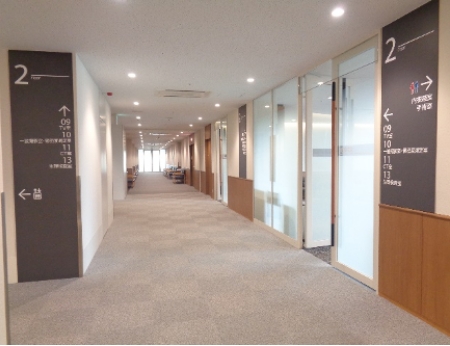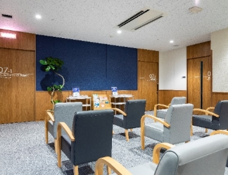 白色と木目調を基本に落ち着いた照明を配置したフロアで、親切・丁寧な健診を行っています。すべてのスタッフが混雑状況を確認し、快適な受診へのご案内を心がけています。