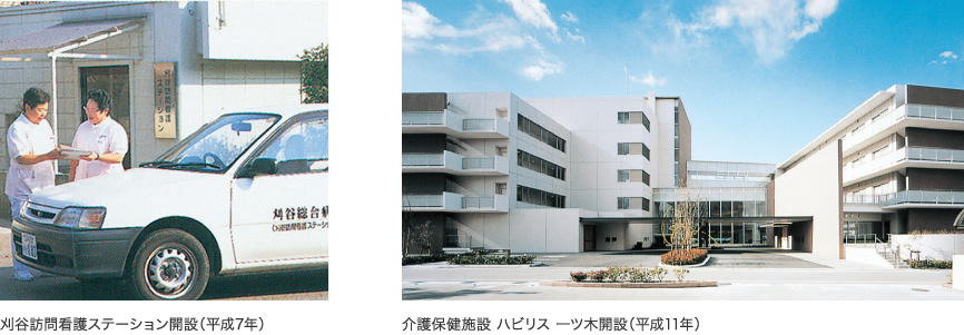 平成7年10月、訪問看護室を発展的に解消し、当院の敷地内に刈谷訪問看護ステーションが新たに発足した。自宅で過ごしたいという患者の希望に応えたものである。専門職が訪問し、健康状態の観察、日常生活の介助、入浴・排泄の介助、栄養指導やリハビリテーション、ターミナルケアなど、現在も24時間連絡体制で在宅療養の患者を支援している。発足当時、スタッフは4人であった。