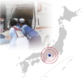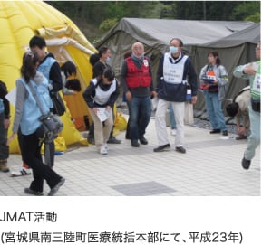2016年4月14日に熊本県を中心に震度7の地震が発生した。当院は、厚生労働省からのDMAT派遣要請を受けて2016年4 月18日より当院DMATを派遣した。