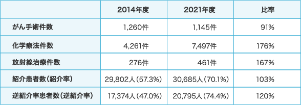 診療実績は、2014年度から2021年度にかけて以下の実績を挙げた。