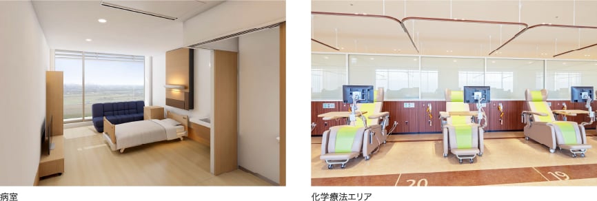 地下1階は放射線エリアとして最新の放射線治療装置、高性能CT装置、MRI(3.0)などを導入し診療体制を強化した。1階2階は健診センターで男性と女性の健診エリアを分け、従来の1.5倍の受け入れを可能とするなど受診者のニーズに対応した。また災害時には被災者を受け入れられる設備を新設し、災害拠点病院(地域中核災害医療センター)の機能も充実させた。3階から7階は、個室病床とし快適な療養環境を整えた。特に7階は愛知県がん診療拠点病院としての機能強化のため20床の緩和ケア病棟を設け、がん治療の全病期に対応できる体制を整えた。