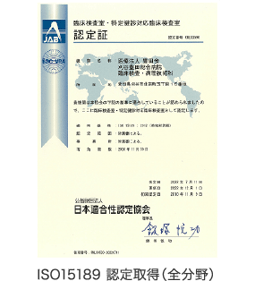 臨床検査室認定とは、臨床検査室の技術能力を証明する手段の一つで、国際規格 ISO15189に基づき、臨床検査を行う能力を有していることを認定するものである。