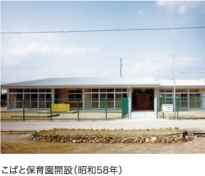 昭和47年8月には院内で働く職員の子どもを保育するこばと保育園が病棟の一室に開園、2人の保母を配し4人の子どもたちが入園した。0歳児から就学するまでの子どもが対象であり、仕事と子育てが両立できると利用者に好評であった。翌年には独立した園舎が完成、保育環境が整えられた。