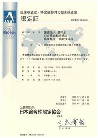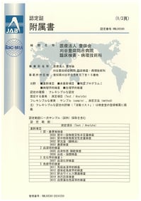 医療法人豊田会刈谷豊田総合病院臨床検査・病理技術科は、臨床検査室の国際標準ISO15189を2010年11月9日付けで認定取得いたしております。