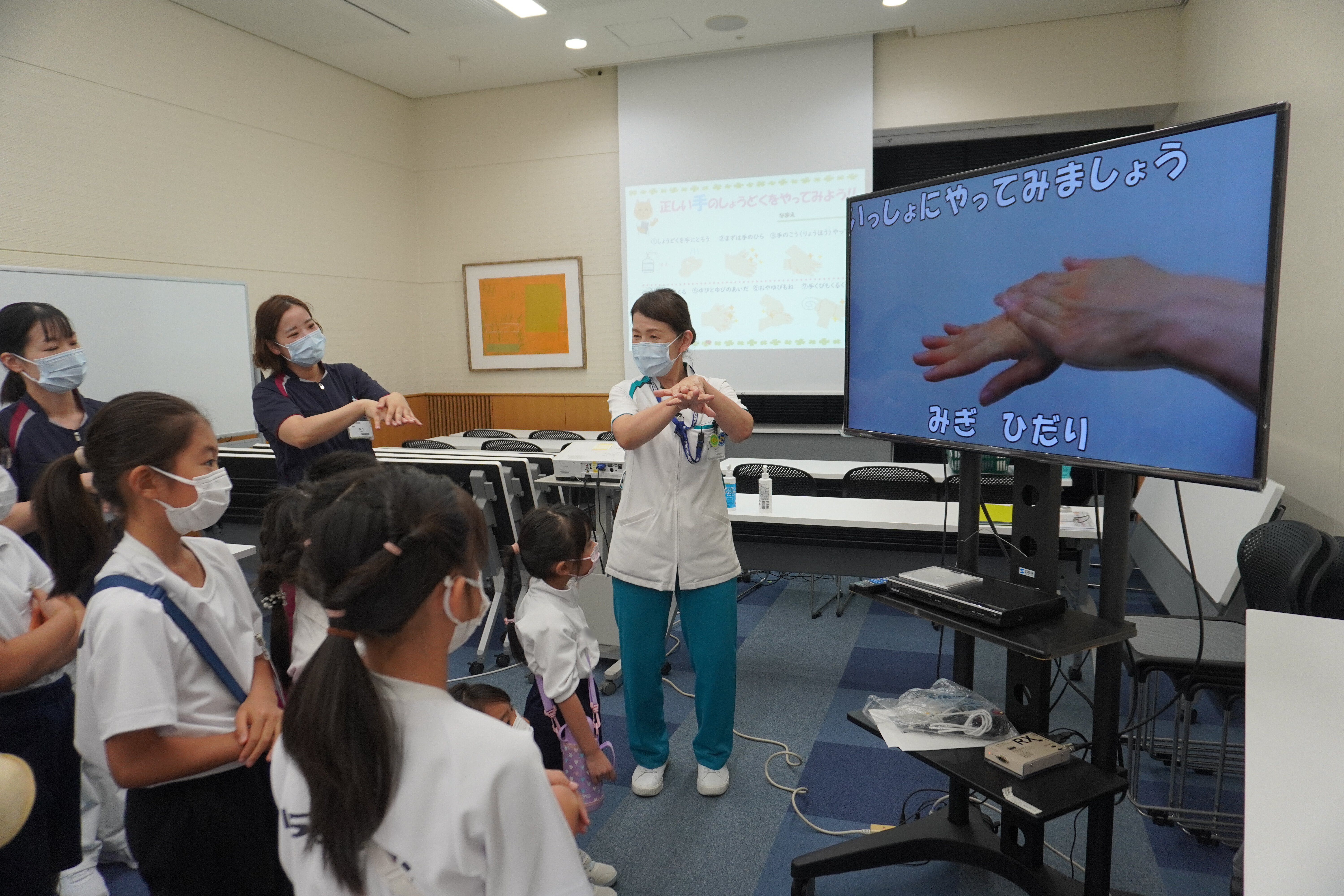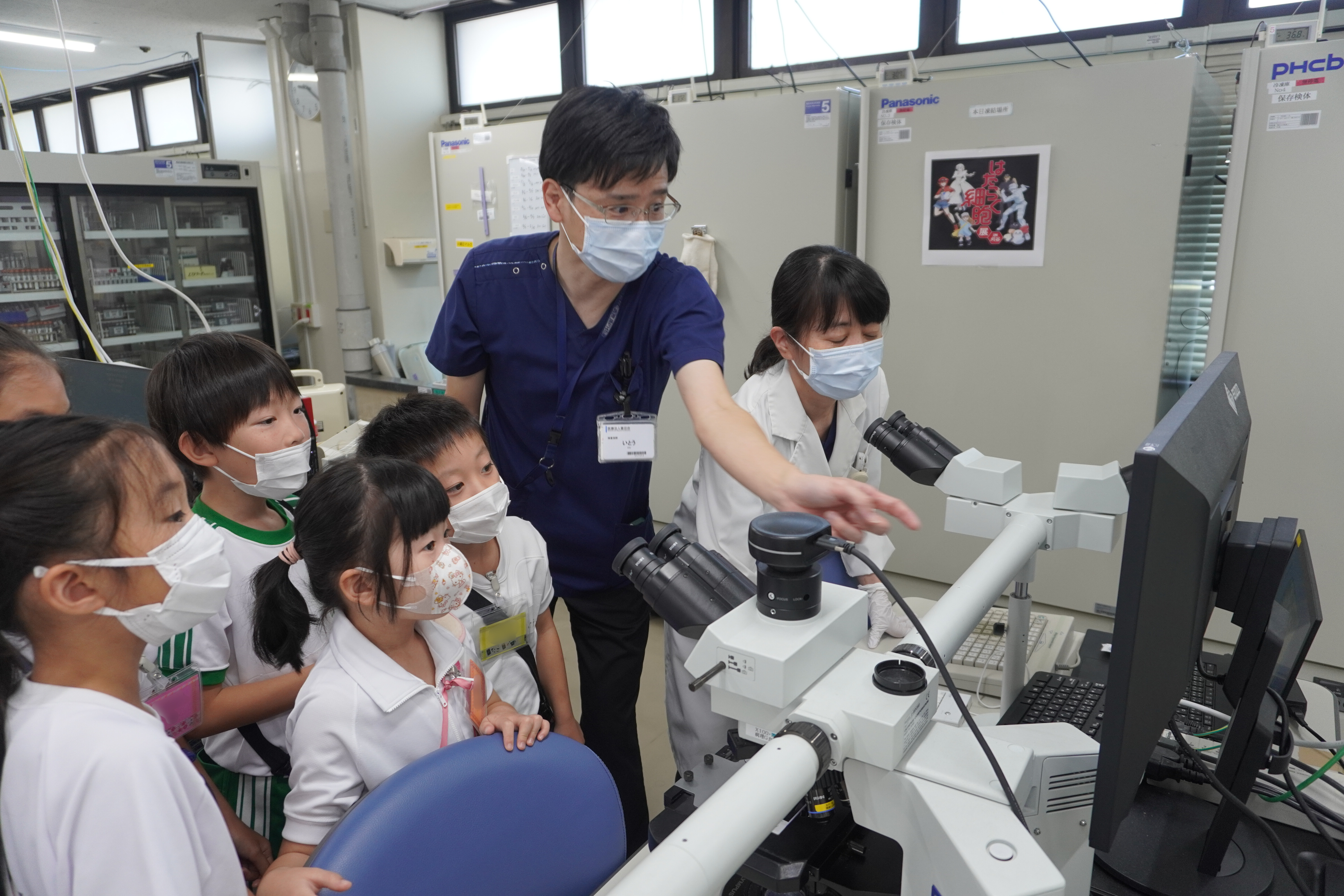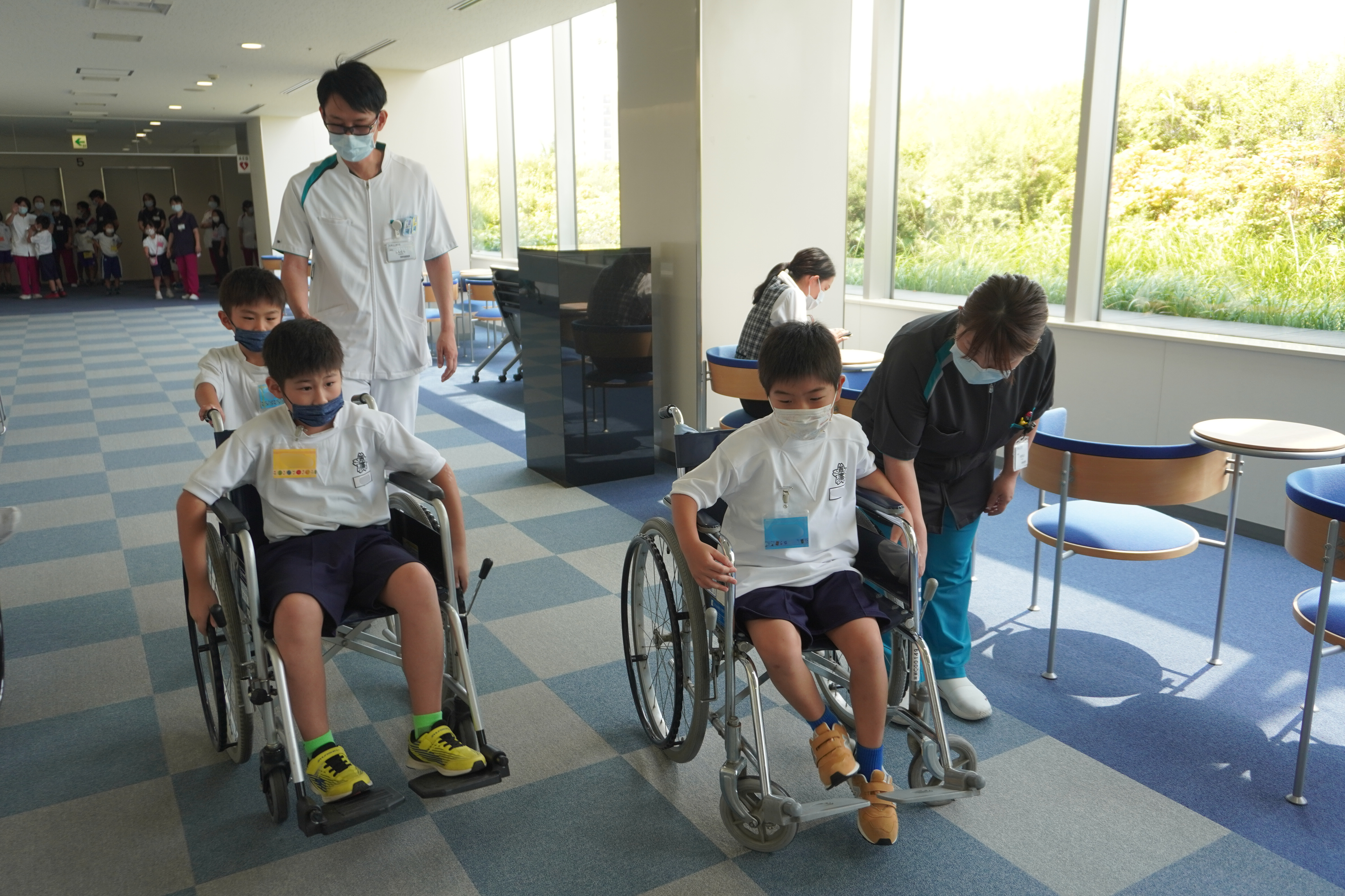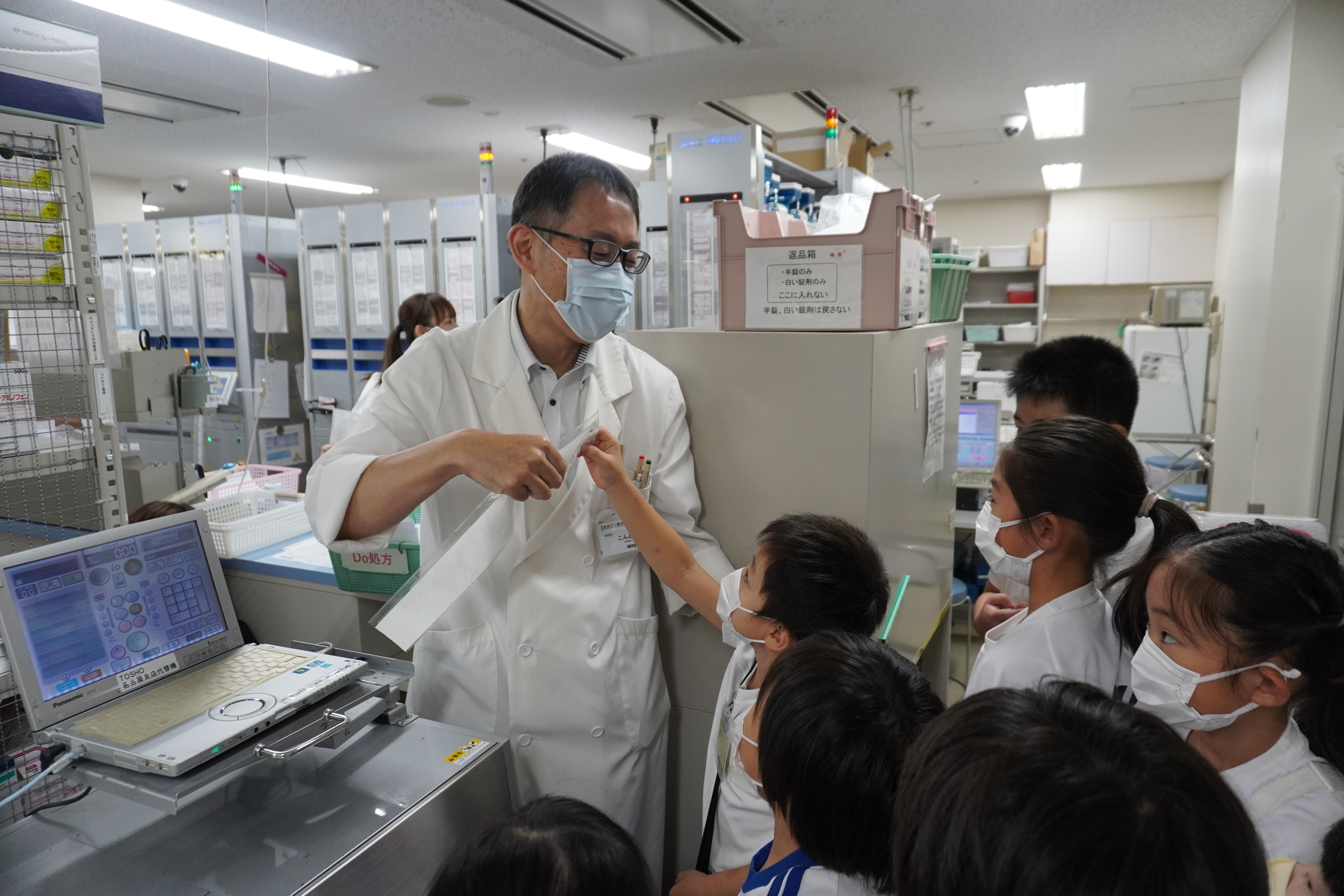 「こども参観日」は、学校で行われる授業参観とは逆で、夏休み中の子どもたちが、お父さん・お母さんの職場を見学する取り組みです。8月21日(木)、看護職員のお子さん37名が参加され、お父さん・お母さんが働く姿を見たり、病院内を探検したりしました。
