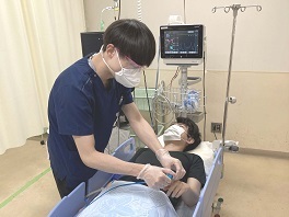 心エコー検査は、当院独自に開発したレポート作成システムを導入しており、高い効率性と充実した教育に特化したシステムです。当院は、第3次救急病院であるため様々な症例を経験します。さらに、研修医に対し超音波検査の技術研修も行っています。日々の業務で磨いた知識と技術をもって研修を行い、臨床貢献をしています。
