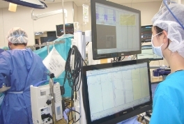 術中モニタリングでは、脳外科・整形外科・循環器外科領域の手術で、患者さんの神経機能障害(運動麻痺・聴覚障害など)を防止するため、手術室で検査を行っています。手術室スタッフと連携し、チーム医療の一員として活躍しています。