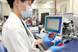自動で血球計数検査を実施後、塗抹・染色された標本を鏡検します。異常所見があった場合は、資格を持つ専任技師が疑われる疾患や関連検査の推奨などを医師に連絡、電子カルテに記述します。検査室から臨床に出て骨髄穿刺の補助、標本作成、鏡検を行います。