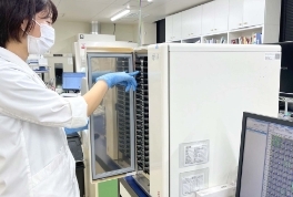 およそ100項目を扱い、約700件/日の検査データを迅速かつ正確に提供するため、搬送ラインを導入して多数の項目を短時間で処理しています。検査システムと技師の目で異常データを確認します。日々の精度管理や機器保守管理も重要な業務です。